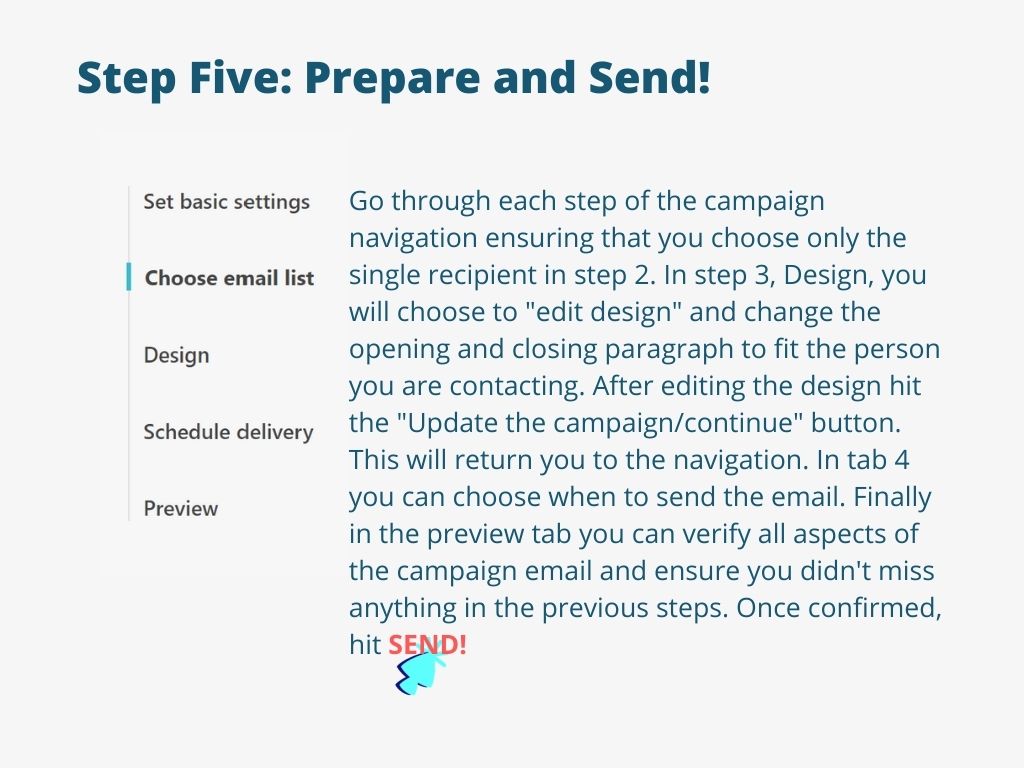 Below is a Standard Operating Procedure that explains my process of setting up and launching an email marketing campaign. Using this process, I’ve been able to execute high conversion email campaigns to help my clients. Success is a process, and processes are often repeatable.